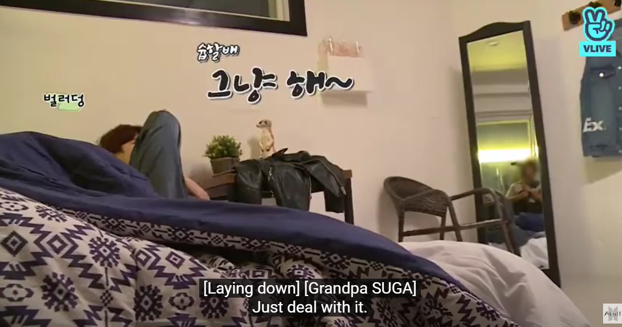 Classic Yoongi whining at Jimin’s art direction. From “RUN BTS!” Ep. 76