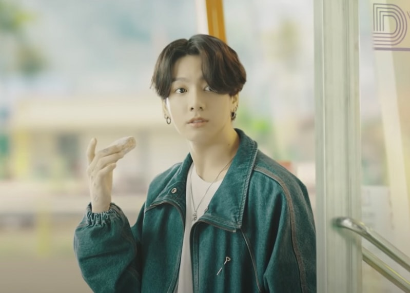Jung Kook enjoying his donut in the "Dynamite" Official M/V