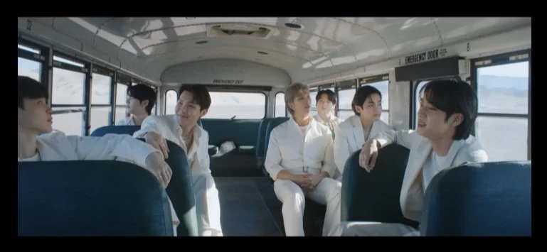 The M/V (live-action this time) features the members in the desert, surrounded by objects significant to their past—references to the sets of all their previous music videos. Two of the most significant, perhaps, are the rusted out swings from “Spring Day” and the school bus from their Debut single, “No More Dream”.