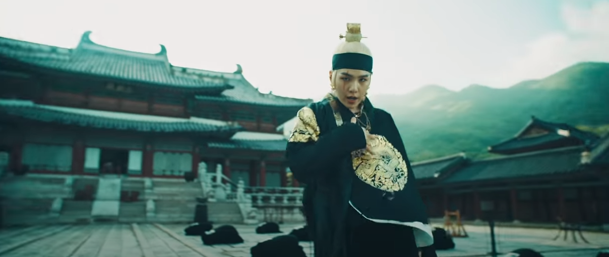 The music video is set partially in a Korean dynasty from long ago. AGUST D is playing a tyrant king, who takes great pleasure in oppressing his people and then executing them when they prove to be an annoyance. But he plays a secondary character as well, an alter ego that seems more rooted in modern times, and is a bit of a rebel and perhaps a thief. The word daechwita literally translates to “great blowing and hitting” and is a reference to traditional Korean military music that is played by wind and percussion instruments. It was used, in the past, to herald the changing of the guard, or the start of a march before battle.